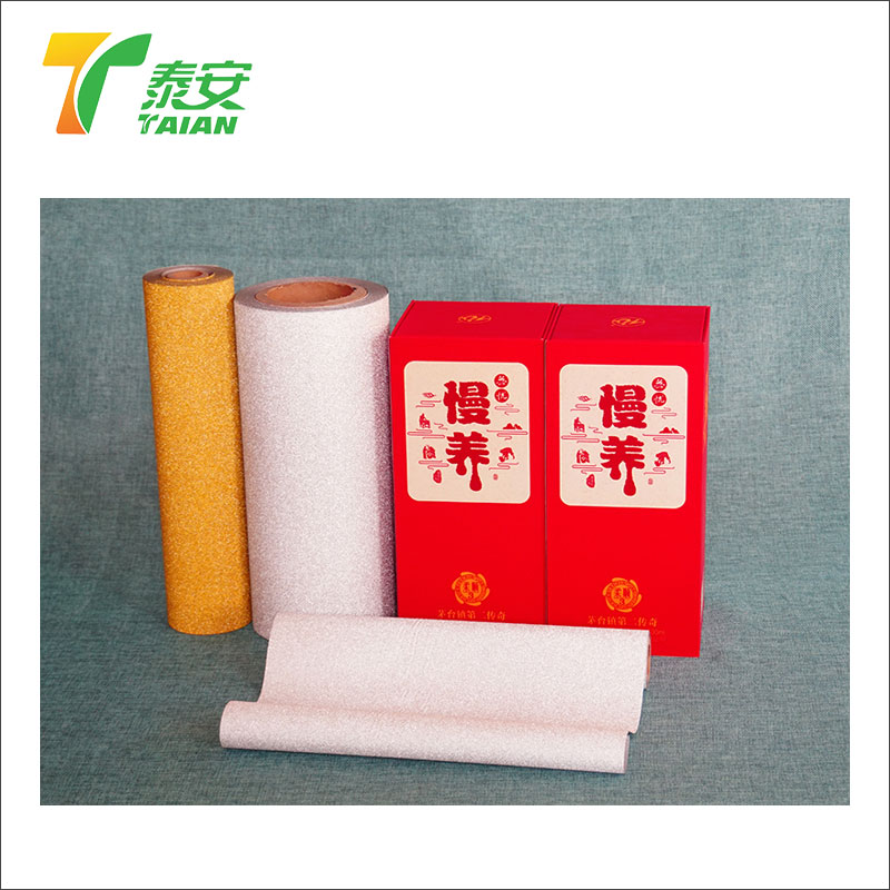 ฟิล์มเคลือบด้วยความร้อนแบบแวววาวของ TAIAN มีเอฟเฟกต์พื้นผิวแวววาวคล้ายกับการพ่นทรายด้วยโลหะ และสามารถเคลือบด้วยกระดาษได้โดยตรง เพิ่มมูลค่าให้กับผลิตภัณฑ์ของคุณ ผิวเคลือบแวววาวด้วยพื้นผิวโลหะ โทนสีอ่อน เอฟเฟกต์ดึงดูดสายตา และความรู้สึกหรูหรา สีพื้นฐานสามารถเป็น OEM ได้